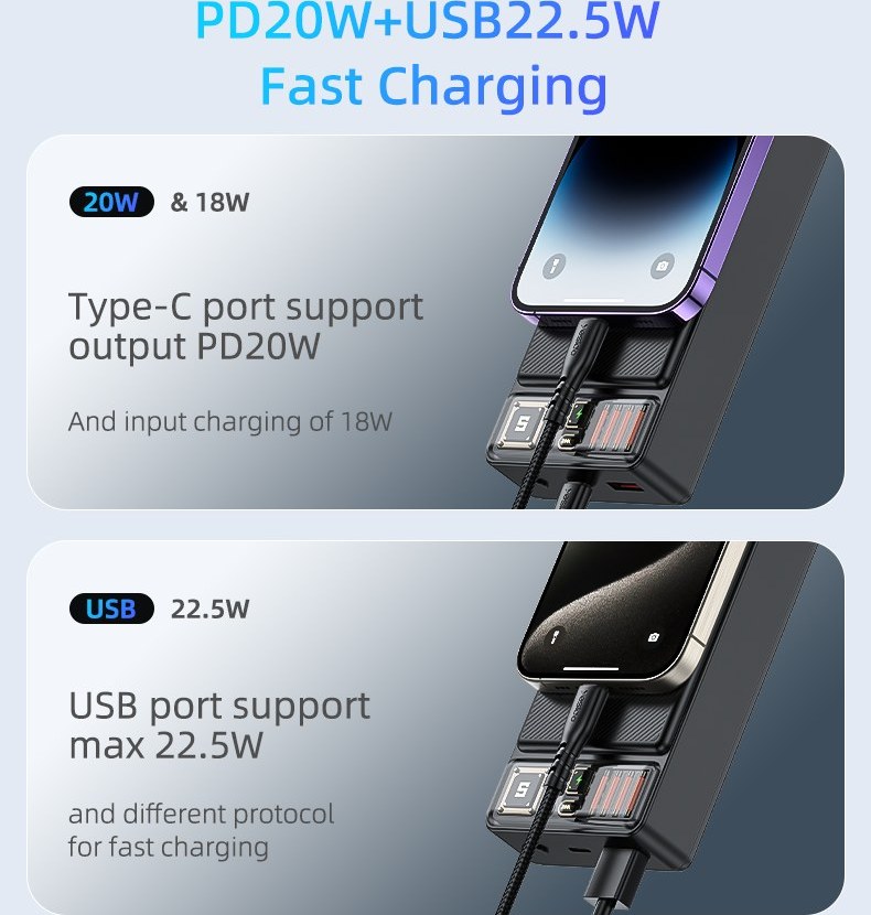 حداکثر توان قابل پشتیبانی: Type-C: 20W USB: 22.5W وایرلس : 5/7.5/10/15 وات